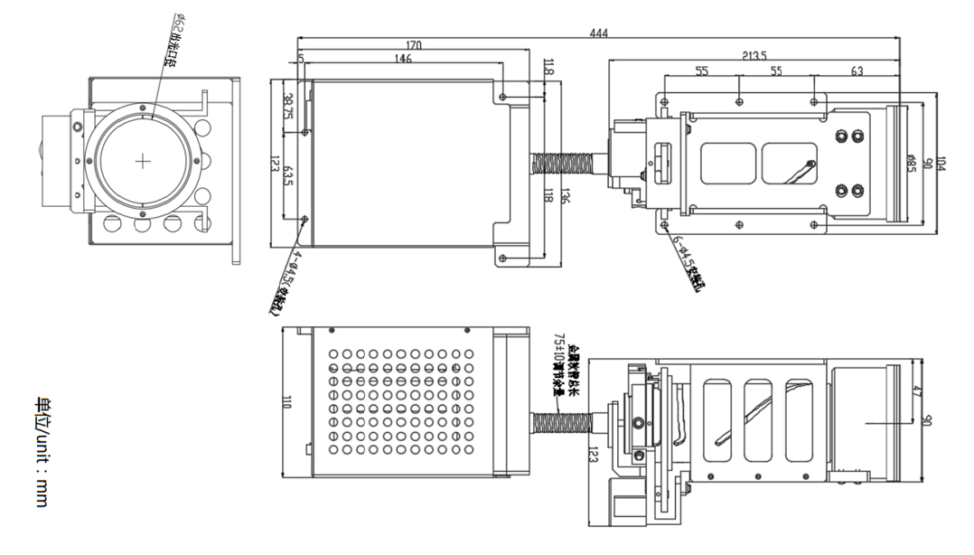 Ángulo de feixe láser | Ángulo lonxano 0,3 °, distancia efectiva> 3000m, diámetro de mancha de feixe < φ16m |